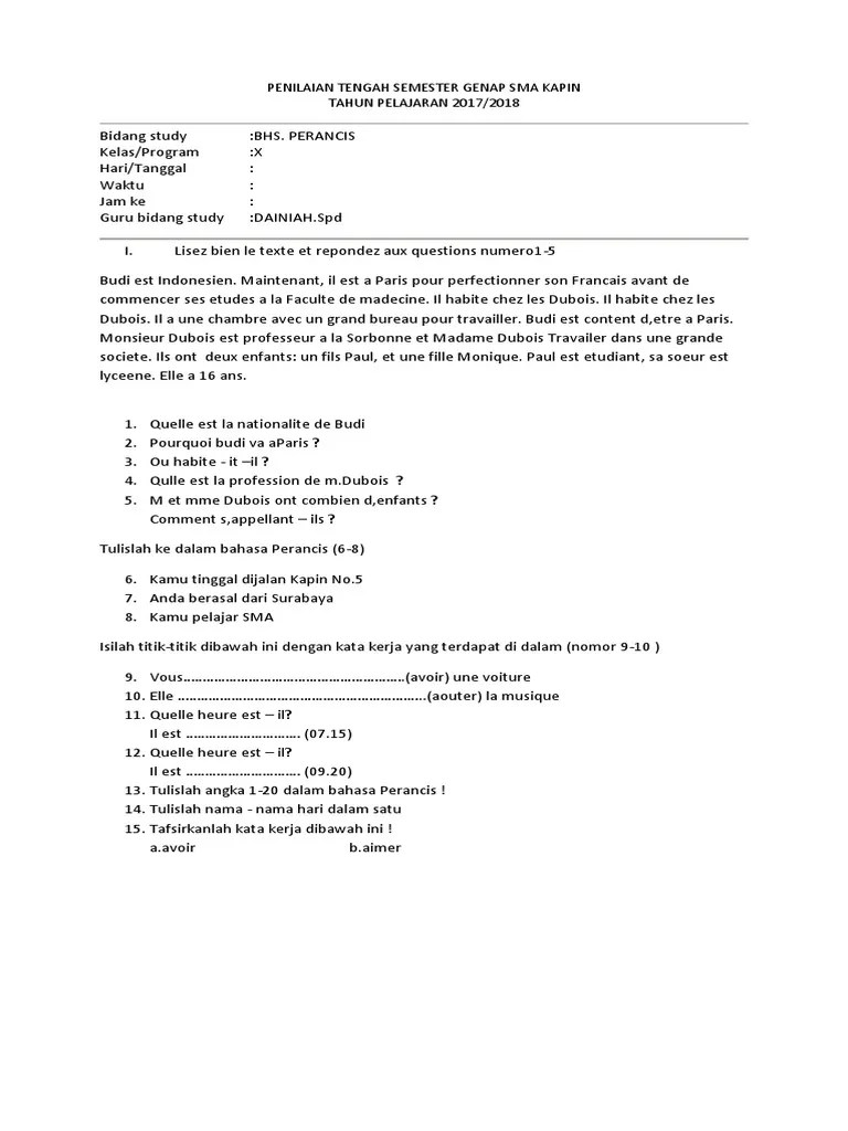 Soal Dan Jawaban Bahasa Prancis Kelas 10 Semester 2 : Top Pdf Soal Latihan Uas Bahasa Indonesia Sma Smk Ma Kelas X 123dok Com - Jun 02, 2021 · soal uas bahasa indonesia kelas 10 sma / smk semester 2, kunci jawaban soal latihan ukk dan pas.. Jun 13, 2021 · untuk mengunduh file gunakan tombol download yang. Soal uts b arab kelas 6 sdit mi semester 2 genap 2017 soalbagus com contoh soal bahasa arab. Sila yang menunjukkan bahwa bangsa indonesia mengakui dan menghargai keragaman yang ada di indonesia berlambang. Sep 06, 2019 · contoh soal pilihan ganda bahasa prancis. Oct 16, 2019 · 16 oktober 2019 12 maret 2020 azzahra official 2 komentar contoh soal berikut adalah contoh soal text dialog activity kelas 10 beserta soal latihan dan jawaban.