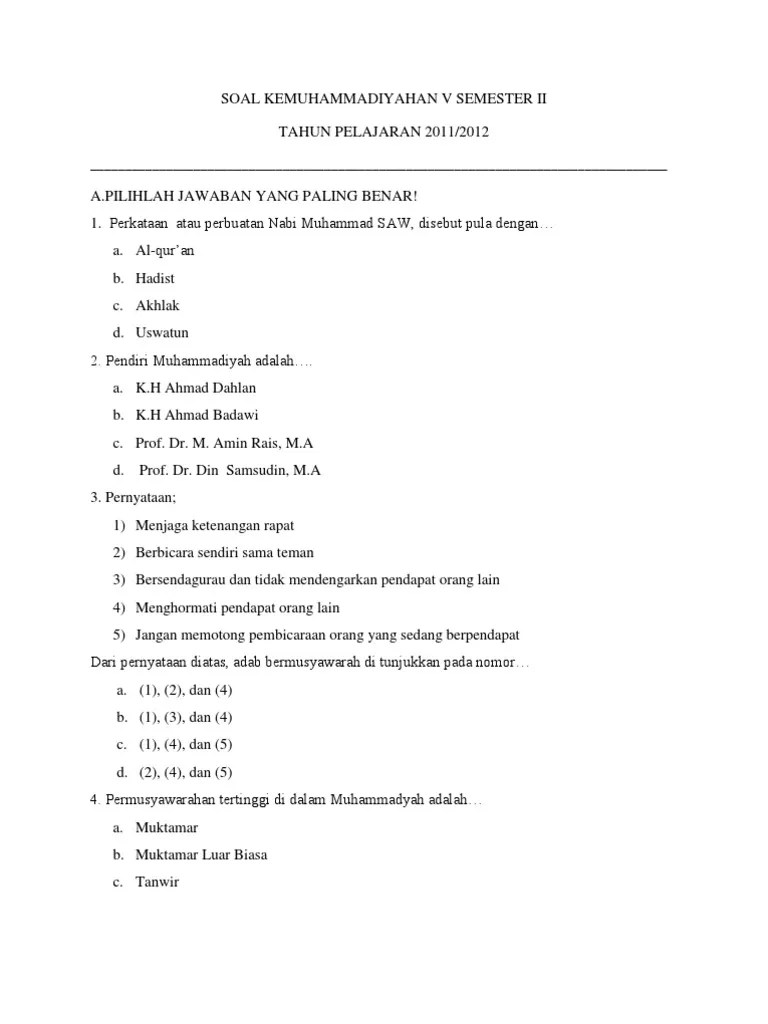 Soal Kemuhammadiyahan Semester Genap Bab 1 Kelas 7 : Soal Uts Kemuhammadiyahan Kelas 7 Edu Github : Silahkan dibaca dan dipelajari, semoga bermanfaat.